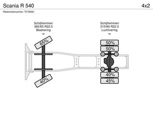 Front axle: Tyre size: 385/65 R22.5; Steering; Tyre profile left: 40%; Tyre profile right: 65%
